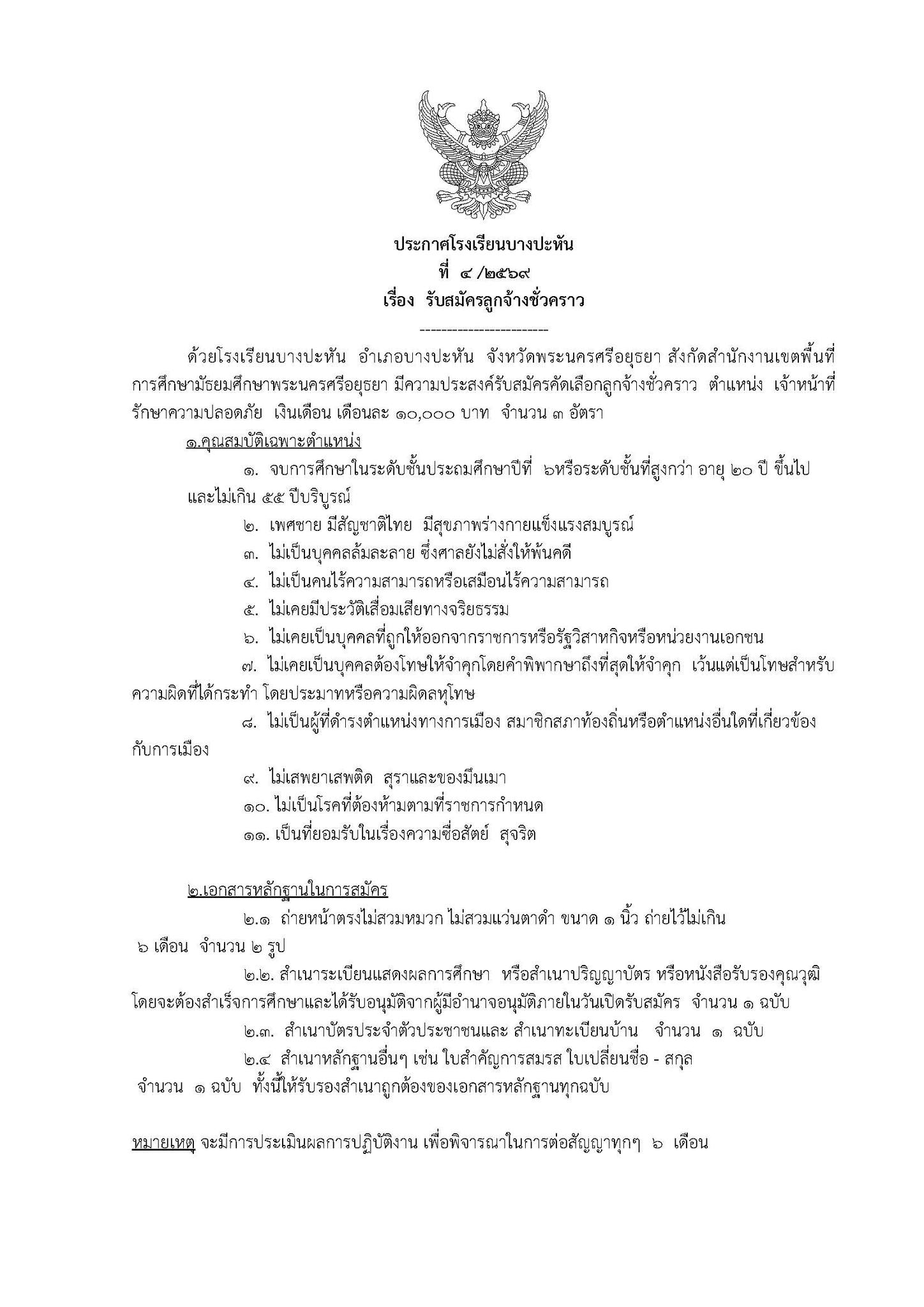 ประกาศรับสมัครลูกจ้างชั่วคราว