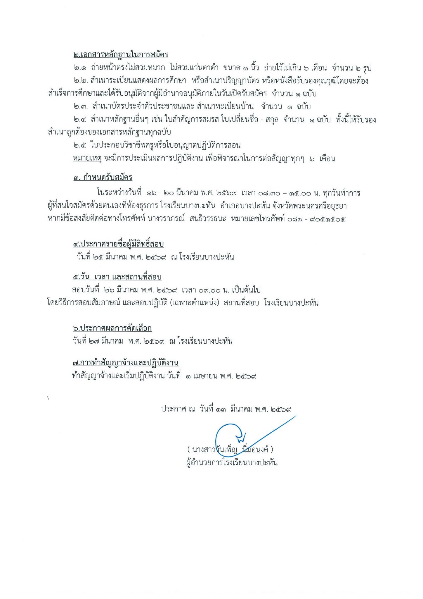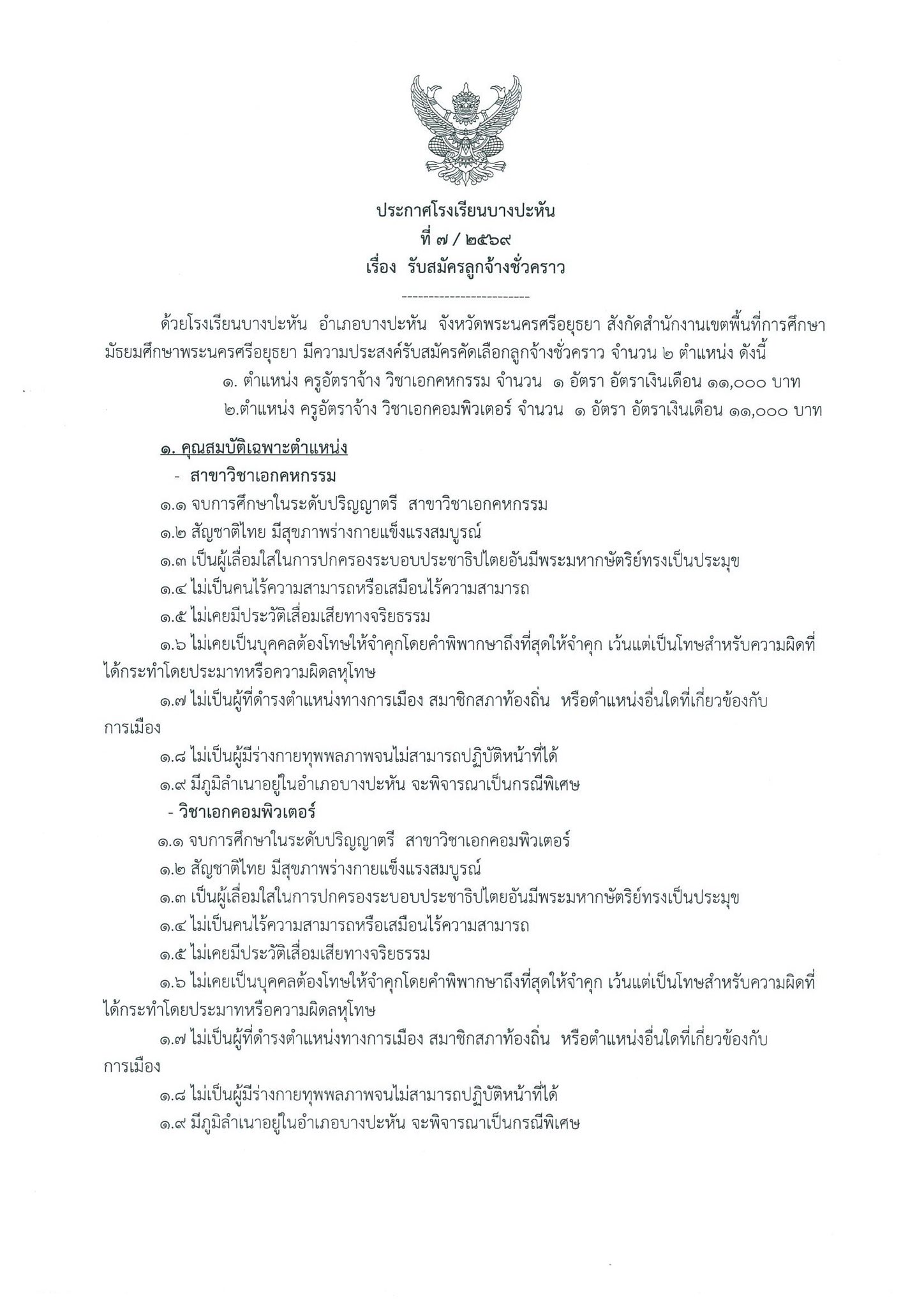ประกาศรับสมัครลูกจ้างชั่วคราว (ตำแหน่ง ครูอัตราจ้าง)
